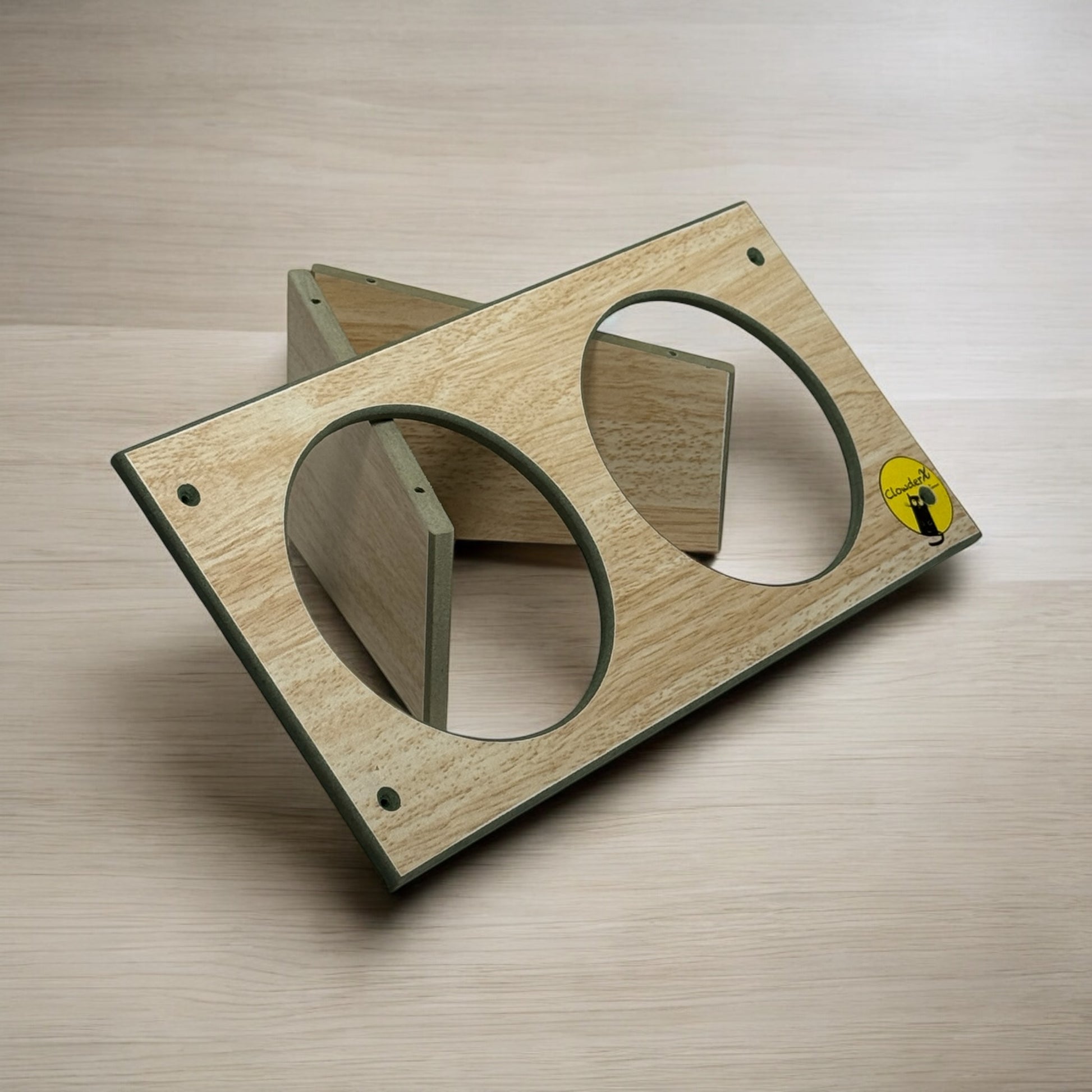 Elevate your pet's dining experience with this stylish and ergonomic feeding bowl stand. Crafted from high-density moisture-resistant (HDHMR) board, it features two stainless steel bowls set at a 10-degree incline, promoting better posture and reducing strain on your furry friend's neck and back during mealtimes. The elevated design keeps the bowls off the floor, ensuring a cleaner and more hygienic feeding area. With its sleek, wooden finish, this feeding station seamlessly blends into any home decor. Suitable for cats and small dogs, it offers a convenient and comfortable way to serve your beloved pets. Prioritise your pet's comfort and well-being with this practical and visually appealing feeding solution.